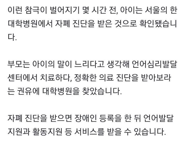 병원에서 자폐증 진단받자마자 바로 사건발생