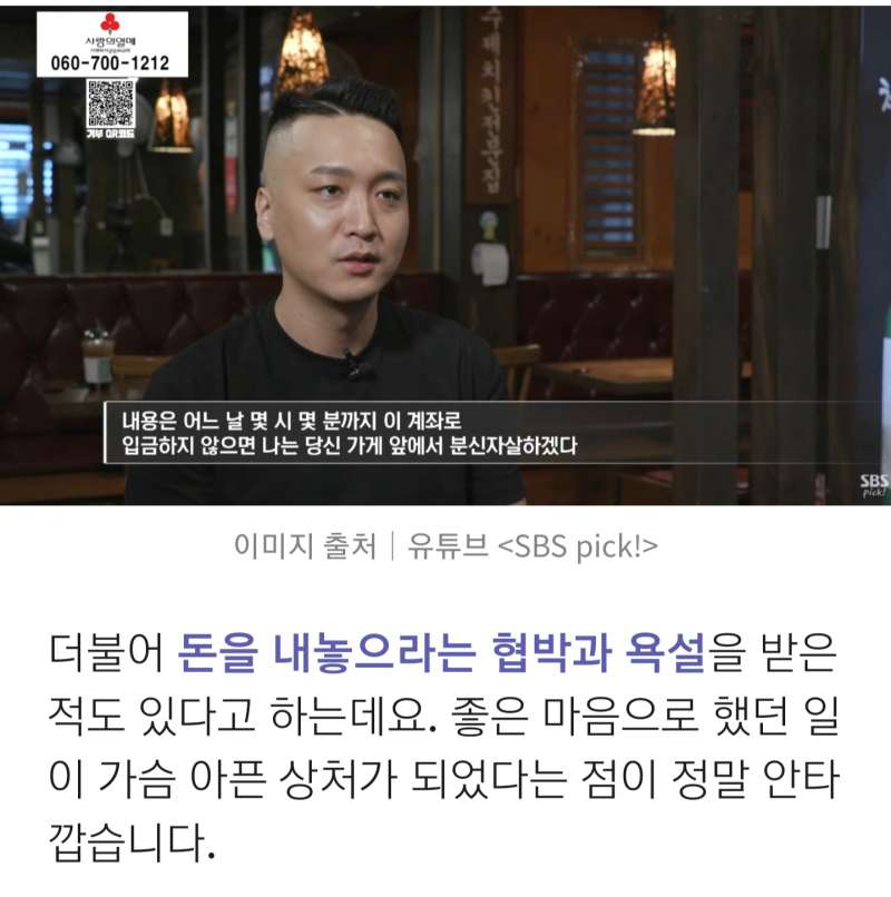 당신가게 앞에서 분신자살 하겠다는 협박까지 받음