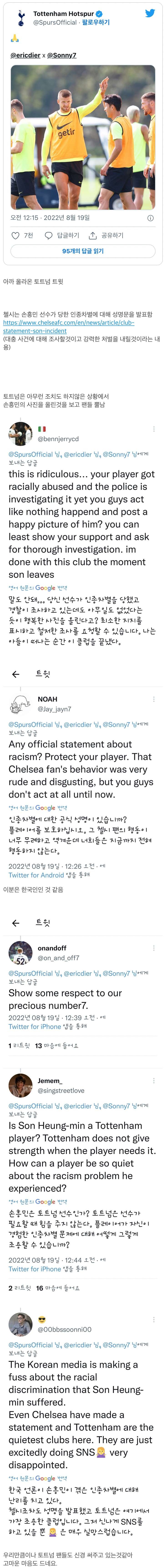손흥민이 인종차별 당하자 토트넘 트위터 상황