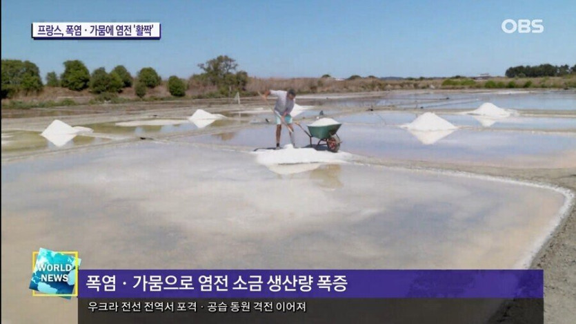 유럽을 덮친 폭염과 가뭄으로 프랑스 게랑드의 염전 생산량이 폭증함.