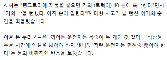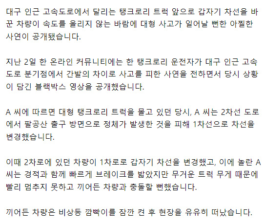 40t 탱크로리 앞으로 머뭇거리면 끼어든 차