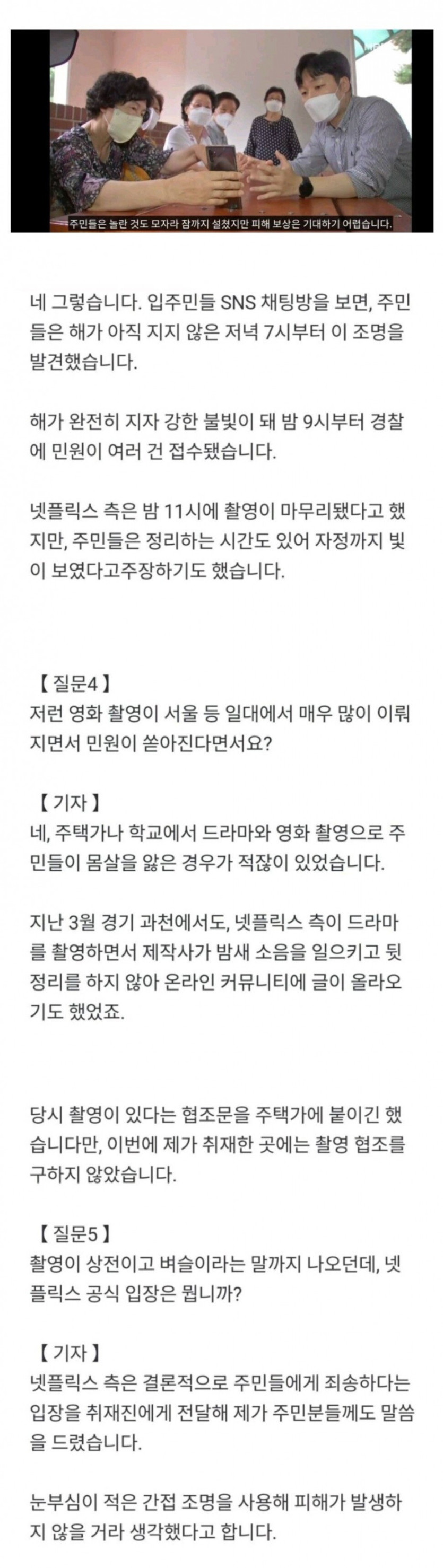 넷플릭스 영화 촬영으로 새벽에 고생하는 주민들