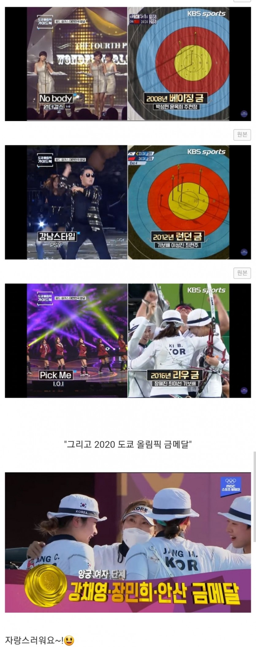여자양궁 9연패 기간동안 히트곡