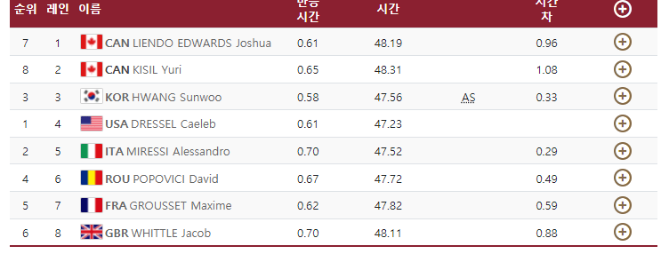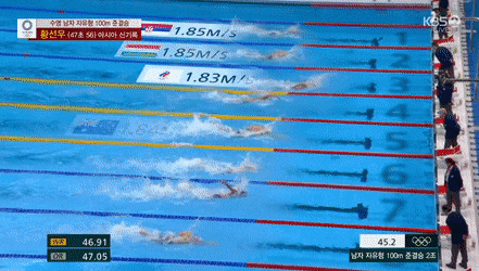아시아신기록작성하며 100m 결승 진출하는 황선우