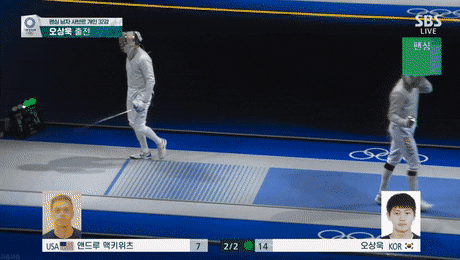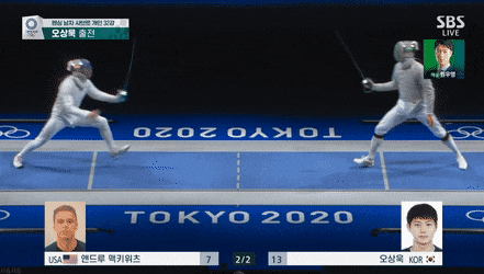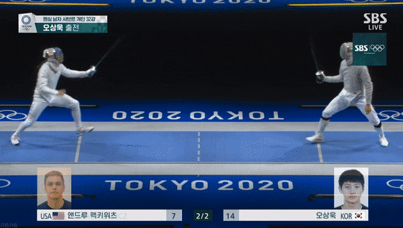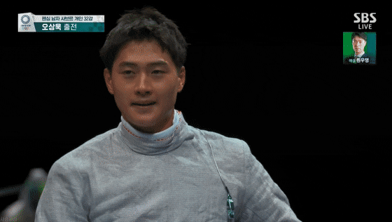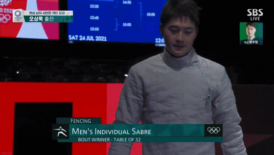 남자 사브르 개인 16강 진출에 성공한 오상욱