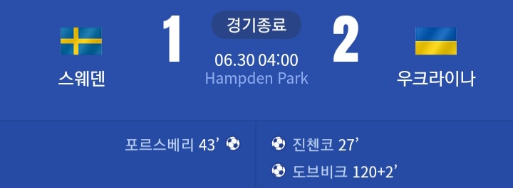 유로 16강 스웨덴 VS 우크라이나 골모음과 8강 대진