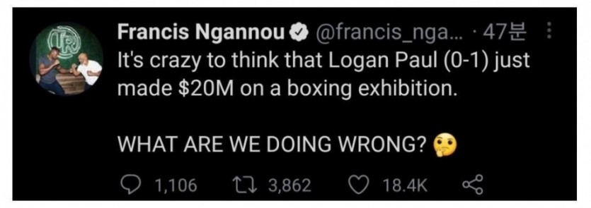 메이웨더와 유투버 경기를 본 은가누의 반응