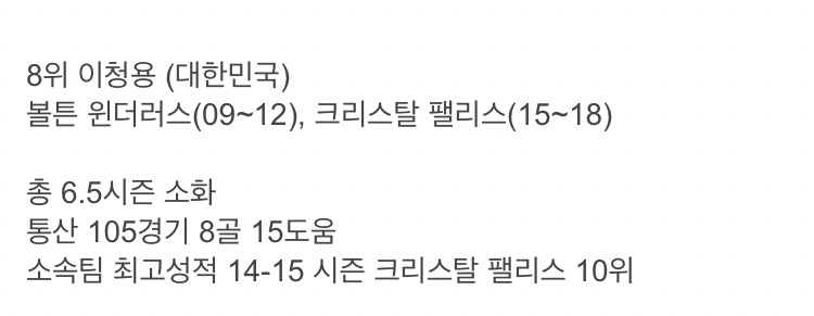 프리미어리그 100경기 이상 출전한 아시아인