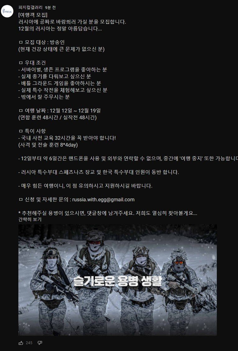 러시아에 총 사놓고 세트장 짓고 참가자 훈련시켰다고 함.