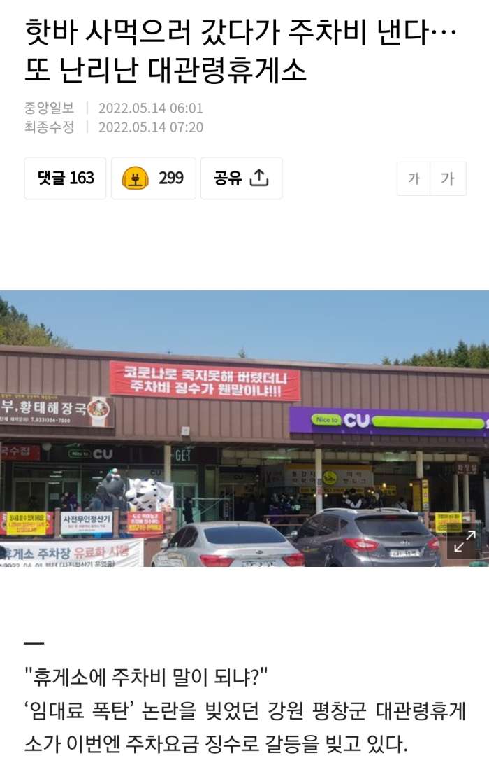주차비 받는 휴개소 ㄷㄷ...