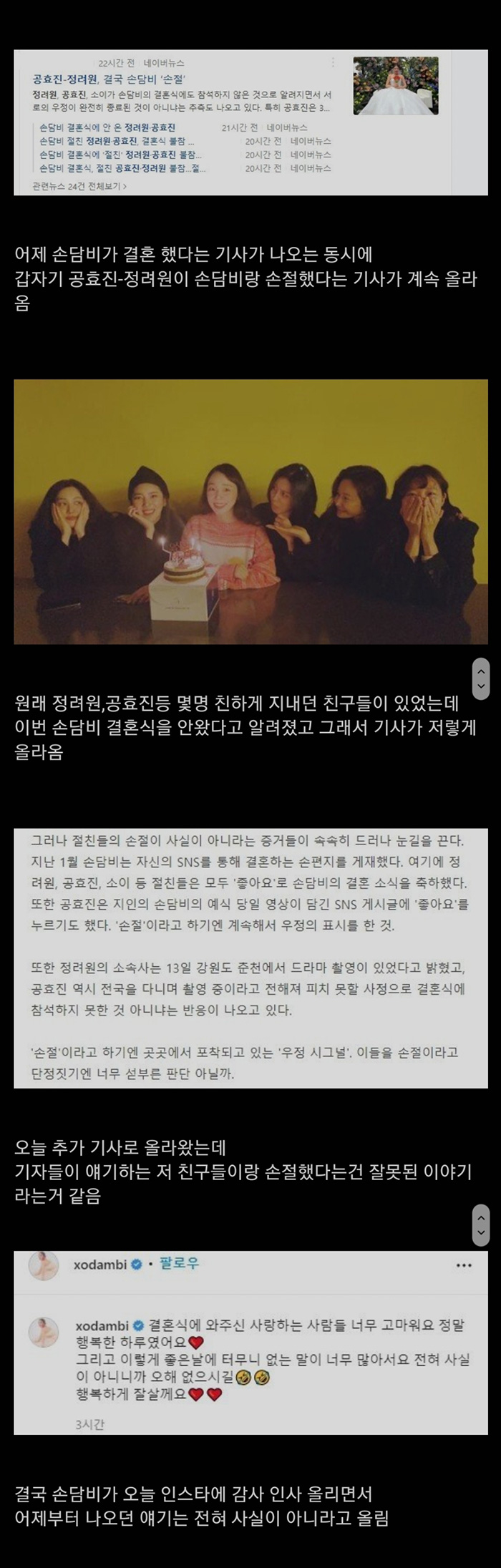 손담비가 결혼 후 인스타에 해명글 올린 이유