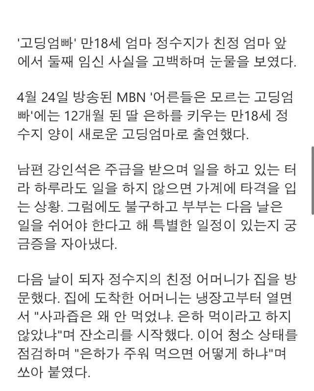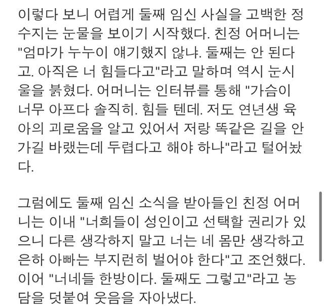 둘째 임신한 18세 고등학생...