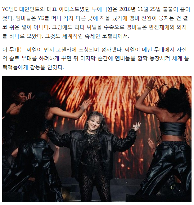 미국 최대음악 페스티벌 코첼라의 CL 자신의 단독 무대의 멤버들을 모두 초대 재결합 무대 완성