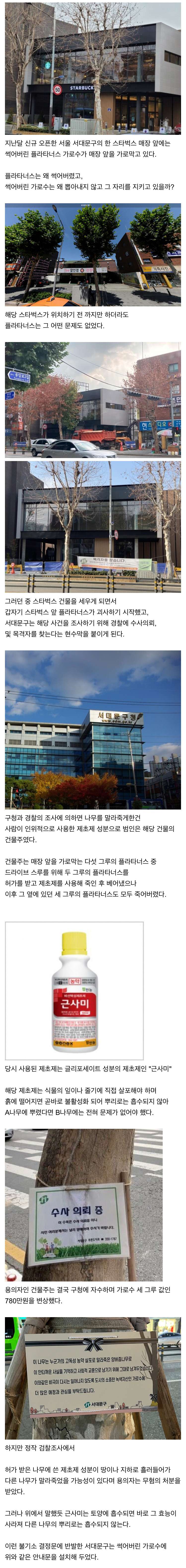 스타벅스 매장 앞에 가로수가 썩은채로 방치된 이유