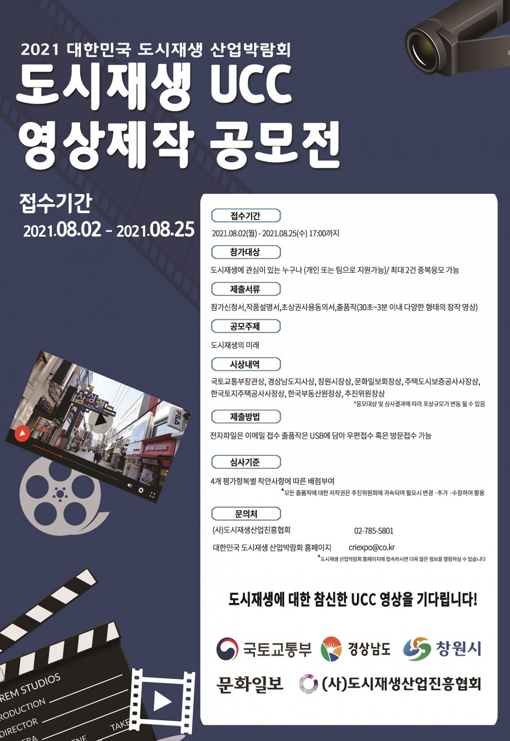 2021 도시재생 UCC 영상제작 공모전■ 공모주제- 도시재생의 미래■ 접수기간 : 2021. 8. 2(월) ~ 8. 25(금) 17:00까지 ■ 제출서류- 참가신청서, 작품설명서, 초상권사용동의서(필요시), USB(출품작을 담고 있어야함, 30초~3분 이내 다양한 …