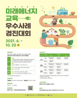 2021년 미래에너지교육 우수사례 경진대회■ 응모주제에너지 절약, 신재생에너지 이용 확대 및 탄소중립 실천 등의 다양한 에너지 주제를 반영한 교육, 실천 및 창작활동- UCC : 초‧중‧고 학생(학생 1~10인, 지도교사 1인) ① 생활 속 에너지절약 및 효율향상, 기…
