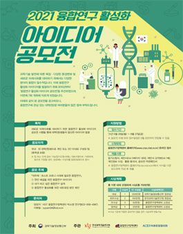 2021 융합연구활성화 아이디어 공모전 과학기술 발전에 따른 복잡‧다양한 환경변화 및 새로운 미래사회를 대비하기 위해서는 다양한 분야의 융합이 필수적입니다. 이에 융합 연구 활성화 아이디어를 발굴하기 위해 2015년부터 ‘융합연구 활성화 아이디어 공모전’을 추진하였으며…