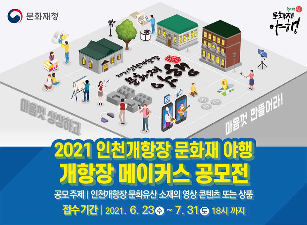 2021 인천개항장 문화재 야행 개항장 메이커스 공모전■ 공모주제- 인천개항장 문화유산 소재의 영상 콘텐츠 또는 상품■ 공고 및 접수기간 : 2021. 6. 23(수) ~ 7. 31(토) 18시까지■ 참여대상 : 인천개항장 문화유산 소재의 영상 콘텐츠 또는 상품 제작에…