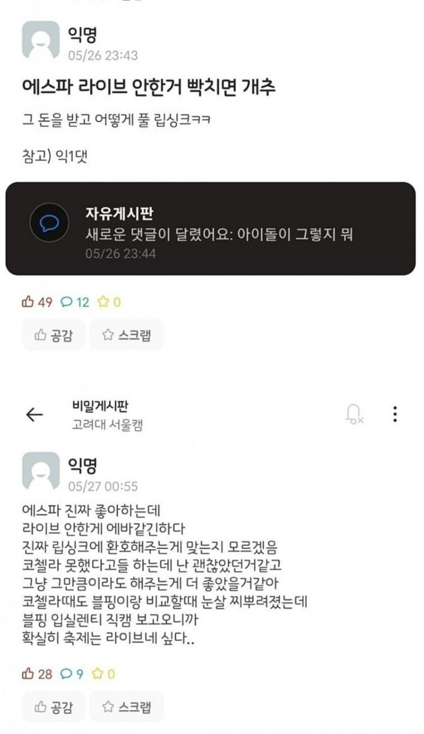 대학교 축제에서 립싱크한 에스파