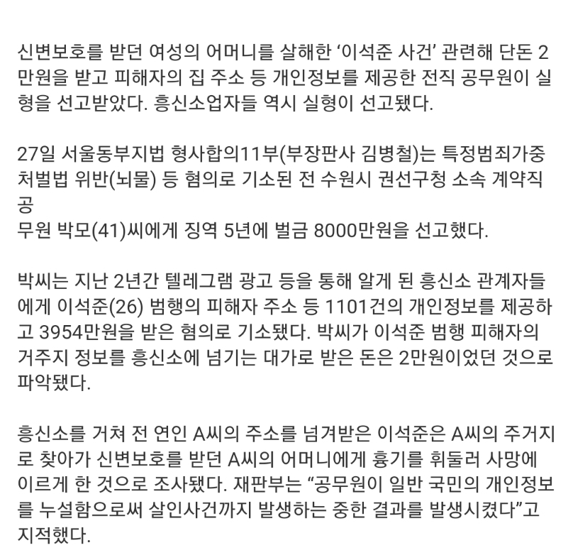 2만원 받고 살해범에게 주소 넘겨준 공무원