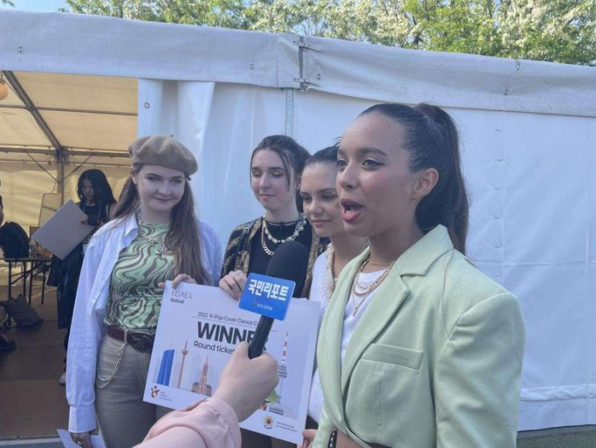 (안동시가 설치한 한복과 안동 하회탈 체험관을 이용하기 위해 길게 줄을 선 유럽 kpop팬들)