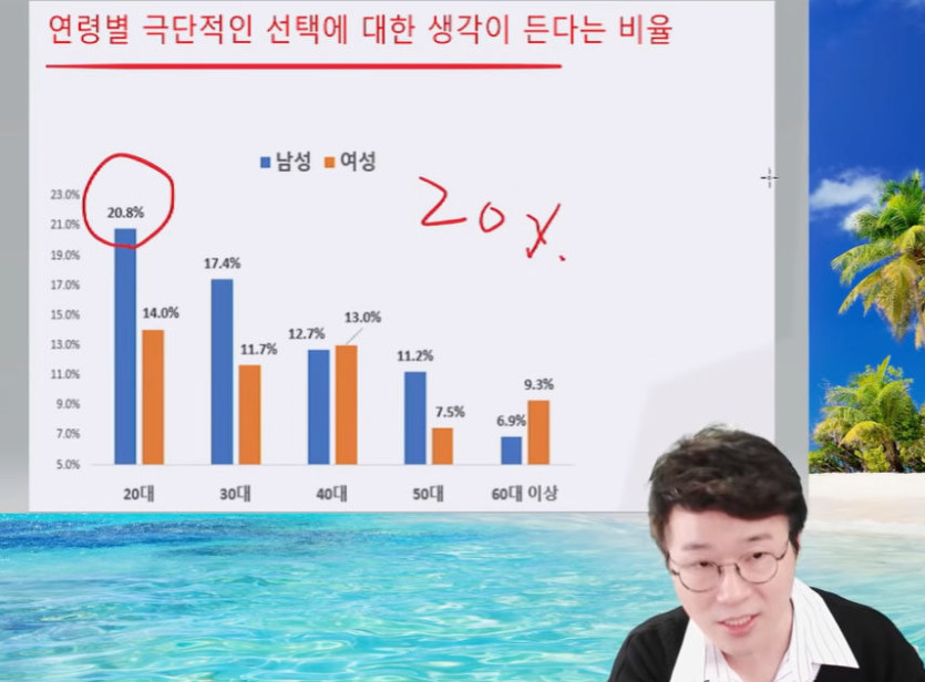 실제로 극단적 선택에 대한 생각이 2030대에서 하늘을 뚫고 날아가는 중이다.