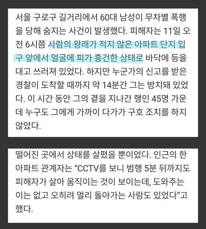 14분 동안이나 방치됐다는 구로동 살인 사건...