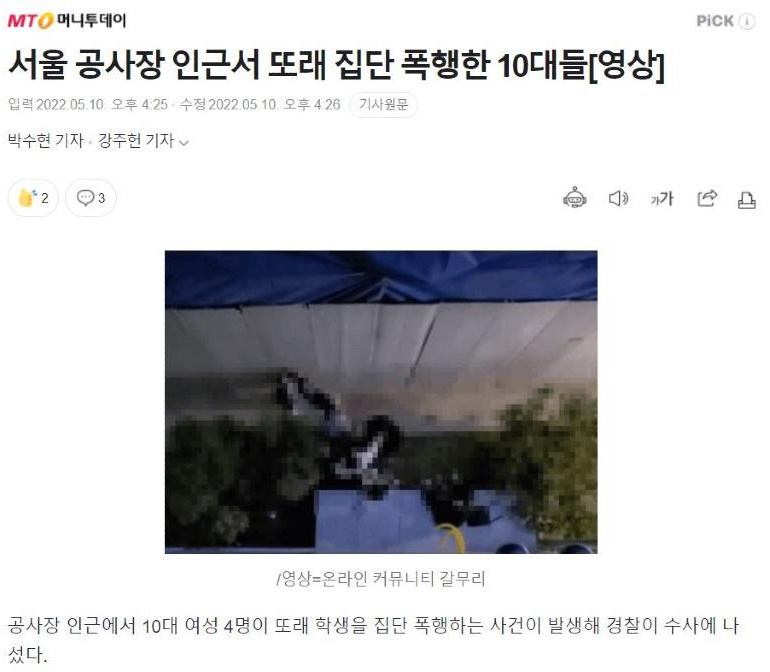 5월9일 저녁 10시반경 천호동 미즈메디병원 현장 뒷편에서 일어난 집단 폭행 현장 동영상