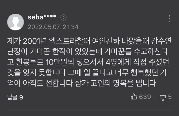 고 배우 강수연님 추모 기사 베플...