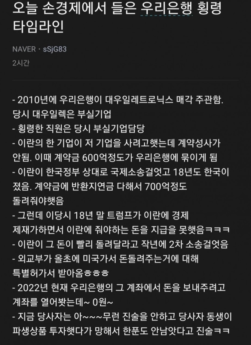 은행 돈 아니라 이란에 갚아야할 돈이었음