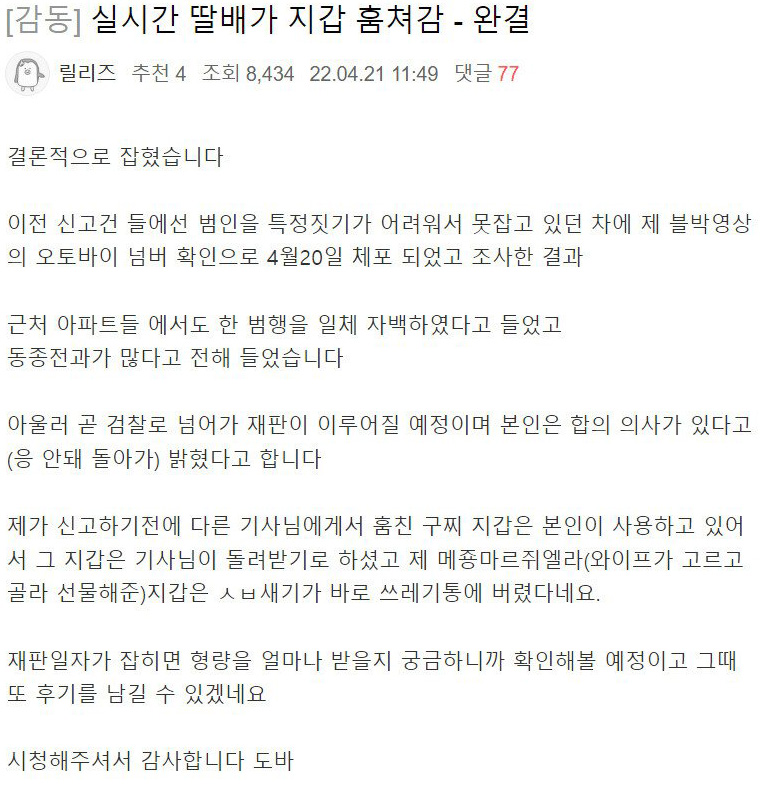 싸해서 배달끝나고 차에 있던 지갑을 보니 없어져있음