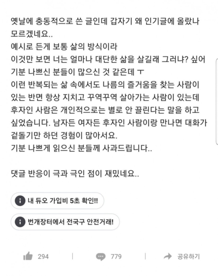 블라에서 댓글 800개 달렸는데, 완전 반반에 극과극으로 반응이 나뉜 글