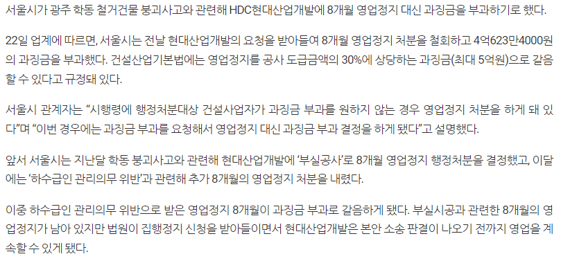 영업정지 대신 과징금 무려 4억 ㅋㅋㅋ