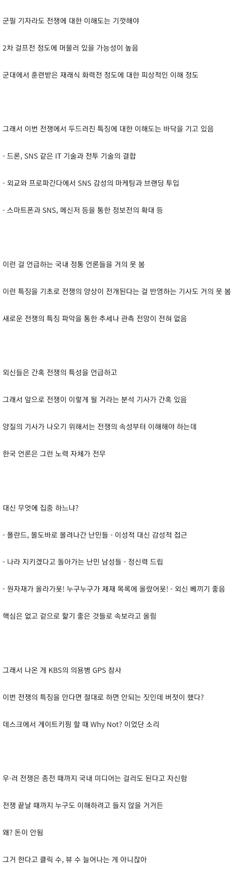 한국 뉴스가 이번 우러 전쟁의 흐름을 못 잡는 이유