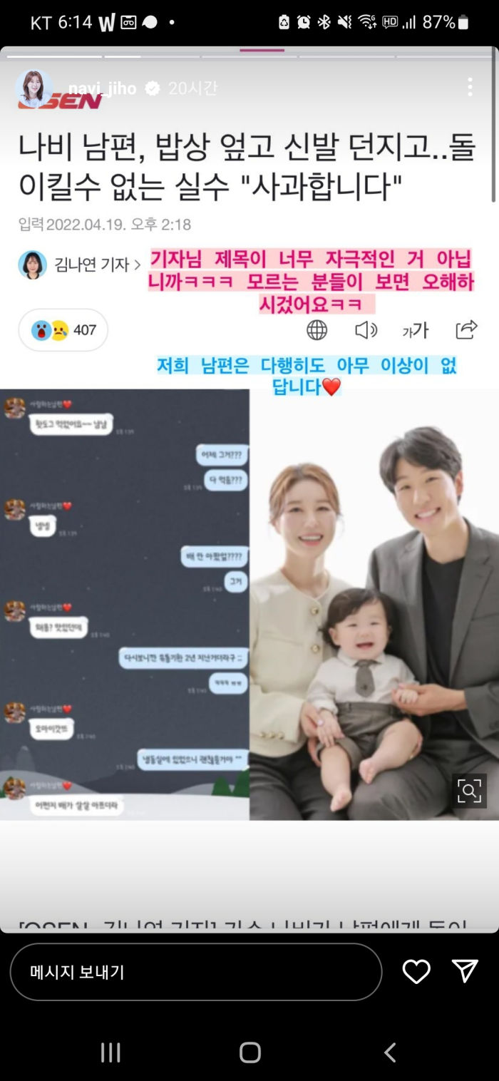 나비인스타 한 기자의 기사 때문에 당황한듯 하다