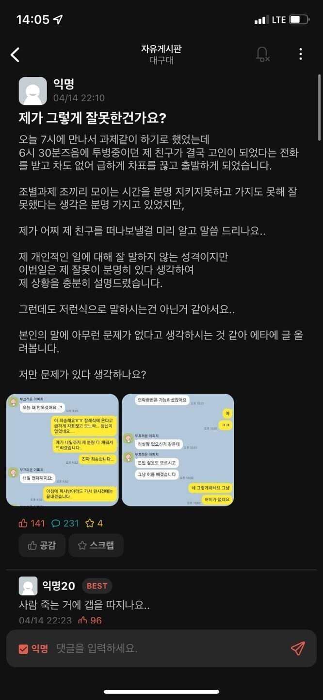 갑작스럽게 친구가 죽어 장례식장엘 갔는데... 제가 그렇게 잘못했나요?