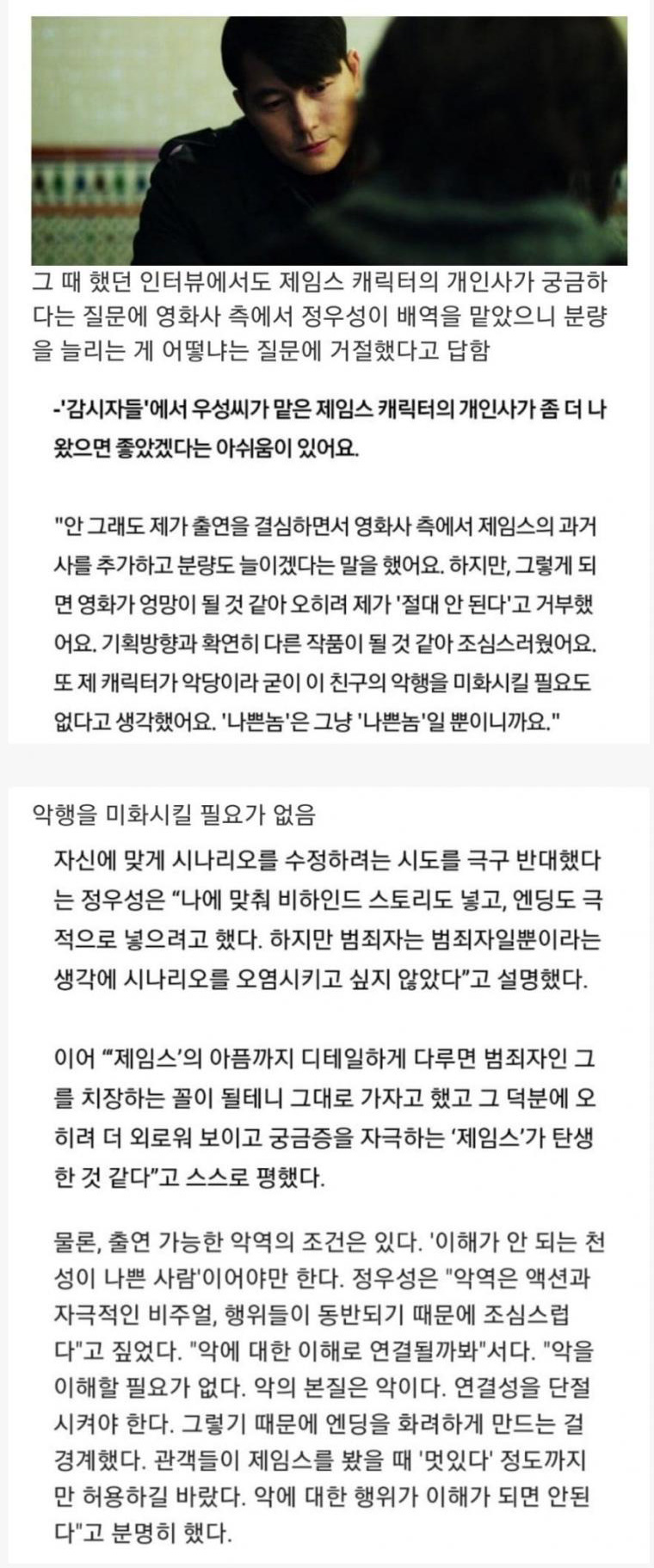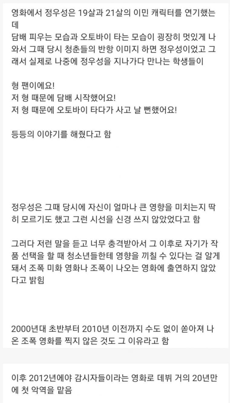 정우성이 어느새부턴가 조폭 영화를 찍지 않은 이유
