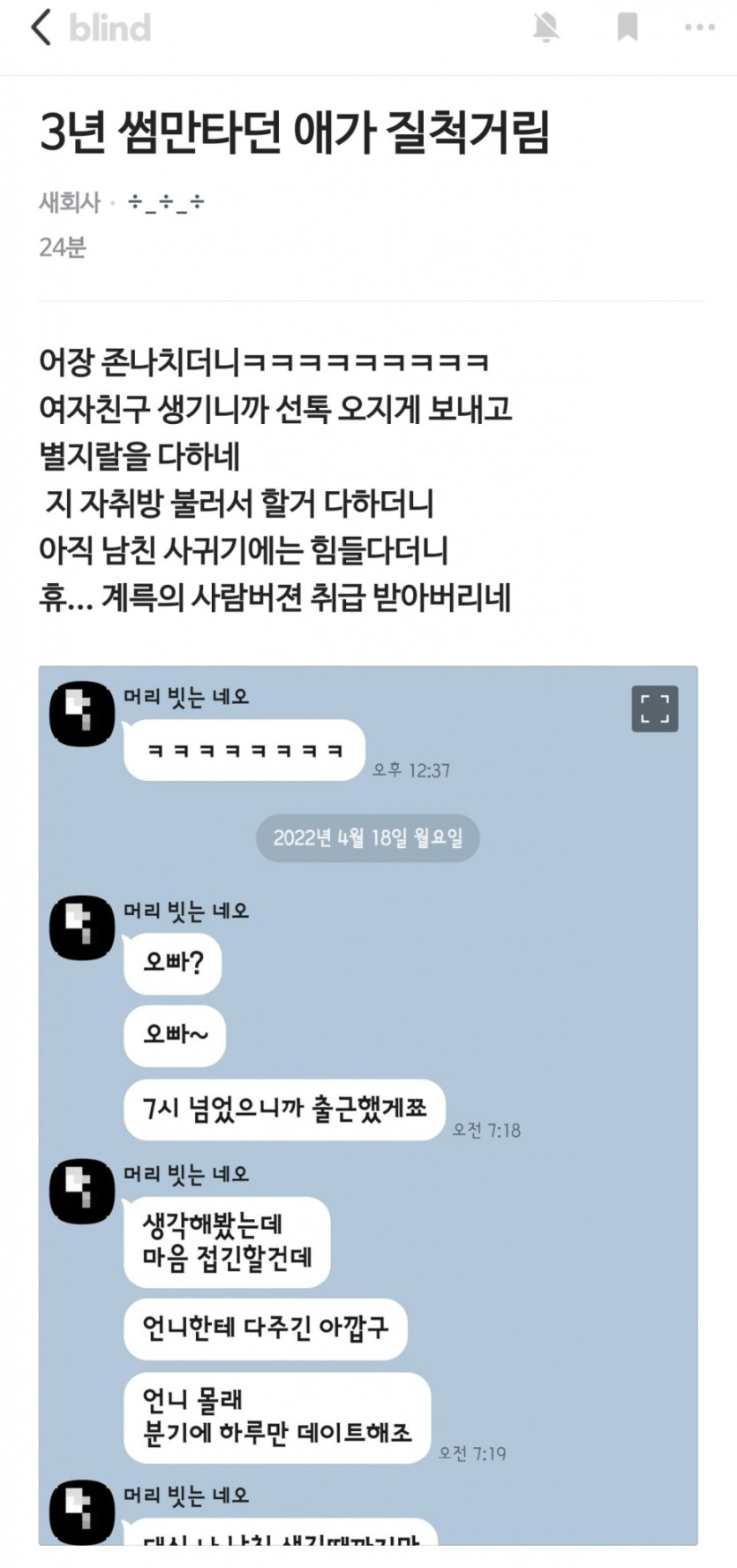 여자친구 생기니까 연락 왔다는 어장녀;;