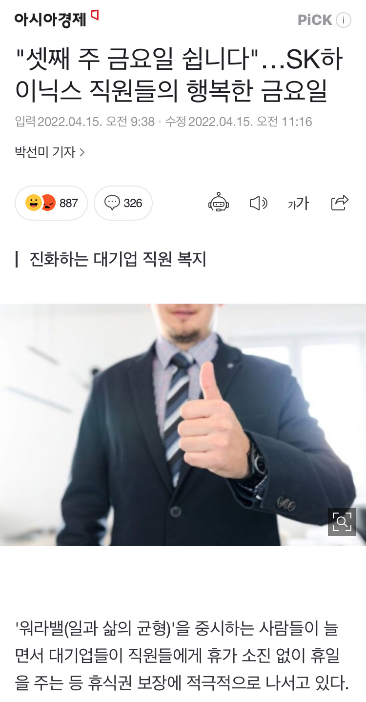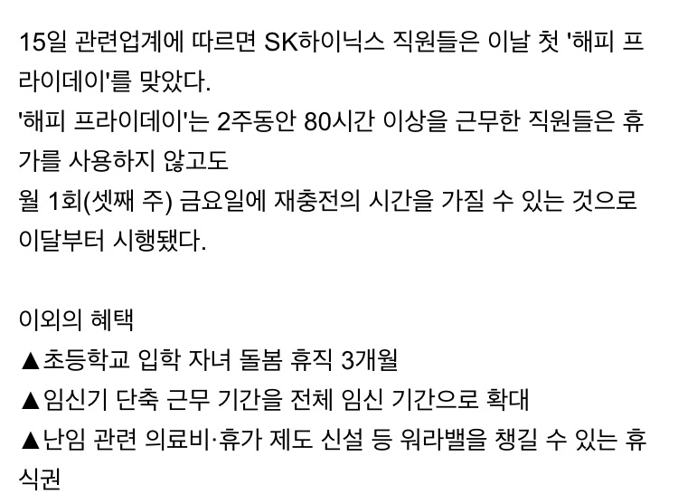 이제 셋째 주 금요일엔 쉰다는 SK하이닉스 직원들