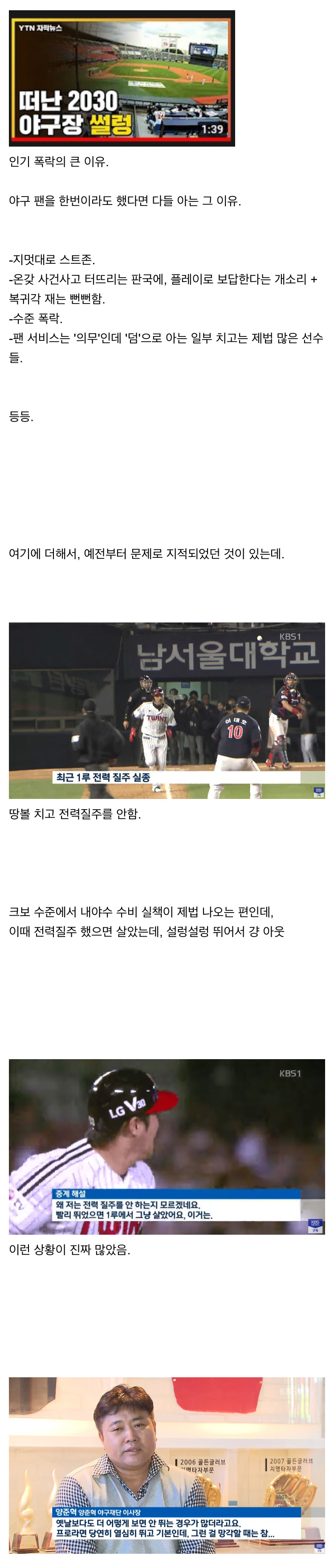 프로 야구 인기 폭락에 제법 기여했다는 것
