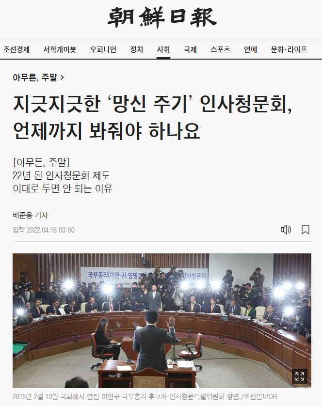 2022년, 인사청문회가 지긋지긋하다고 한다.