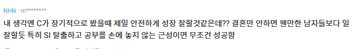 NHN : 극복하기 어려운 단점을 가진 두 명보다 대기만성 유형의 강철멘탈 강한여성이 최고다.