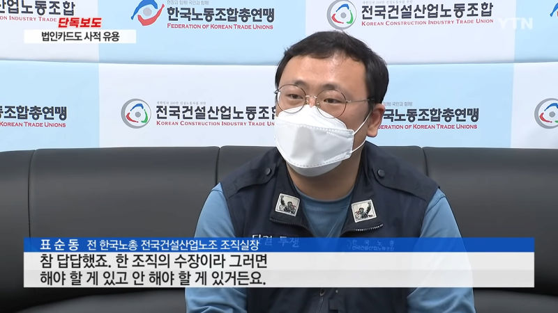 한국 노총 위원장이 법인카드랑 업무추진비 사적으로 사용했대 ㅋㅋ