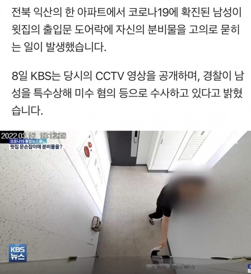 4)하지만 남성이 문지를 휴지에는, 코로나에 확진된 자신의 분비물이 묻어 있었음 (집 주인이 도어락에 묻은 이물질 자가키트 하자 양성뜸)