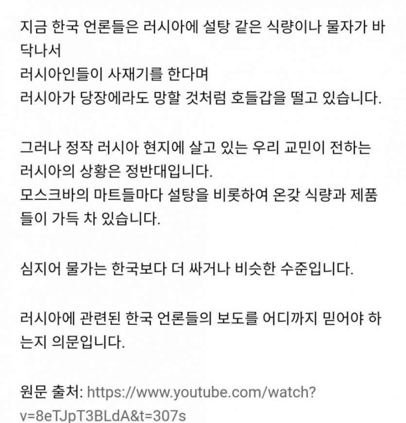 러시아 교민이 전한 현재 모스크바 마트 상황