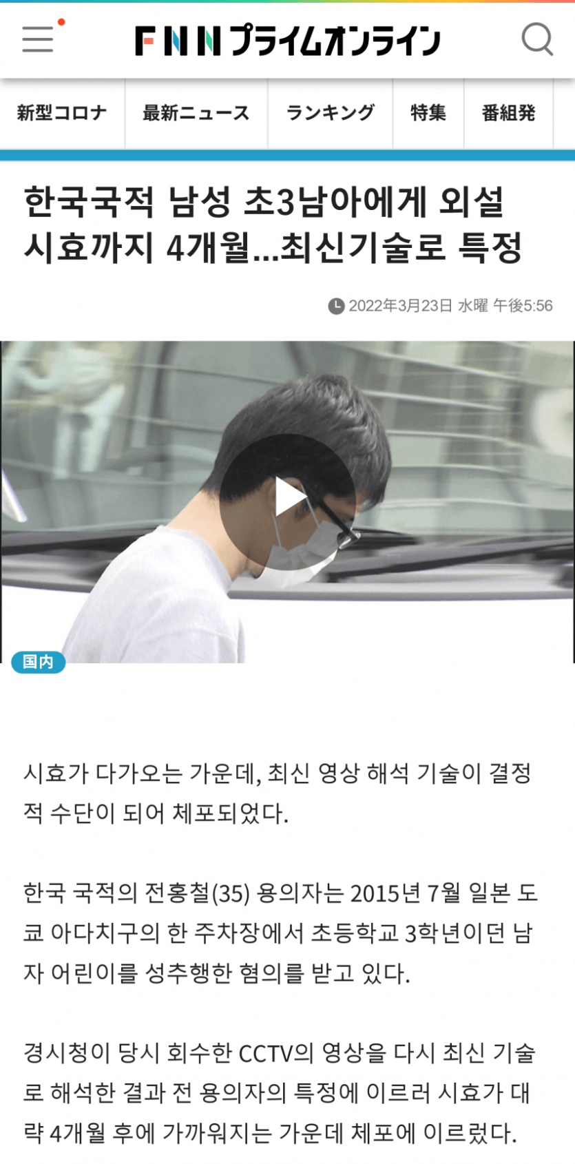 일본에서 검거된 30대 한국 남성