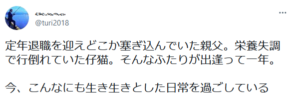 정년퇴직을 맞아 우울해하던 아빠. 영양실조로 쓰러져있던 아기 고양이