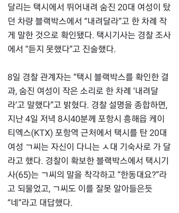 포항 택시에서 뛰어내려 숨진 여자가 마지막으로 한 말...