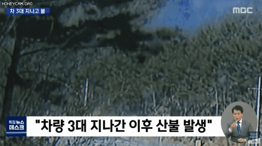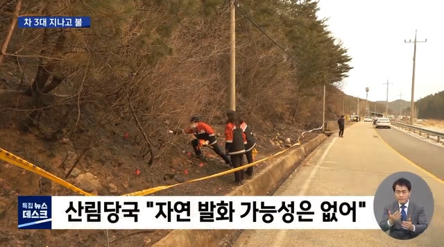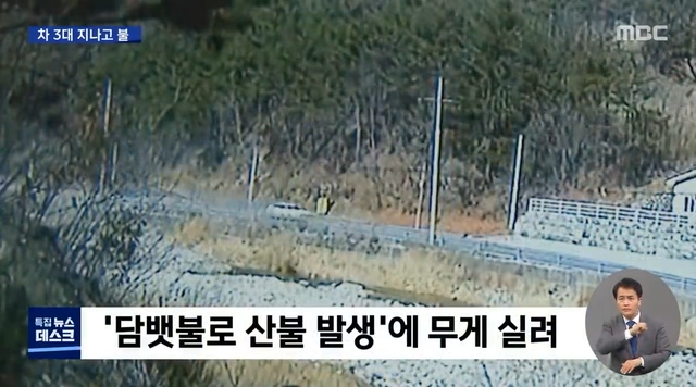 차에서 던진 담뱃불로 산불 발생한걸로 추정