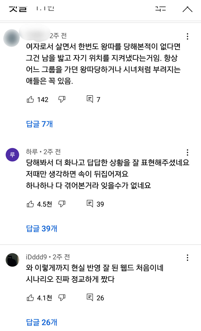 여자들 대부분이 겪는다는 여자들의 왕따...